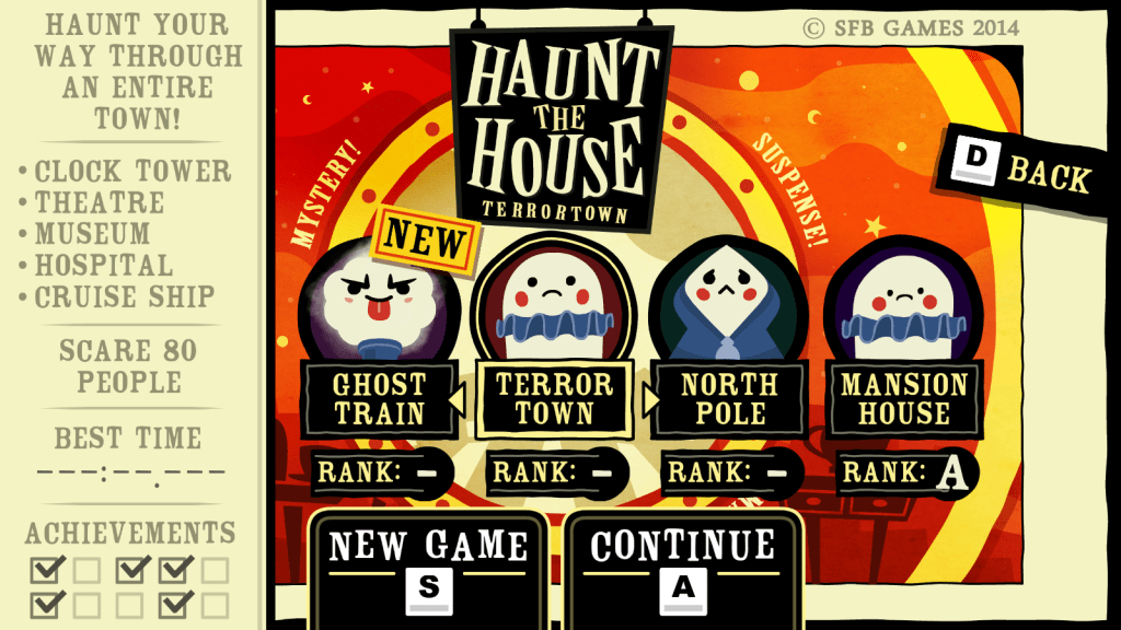 What’s this? another review from Spartan? That’s right folks, here’s part 2 of my Haunt the House series, this time we’re tackling Terror Town. This is a game that I’m not familiar with, as I wasn’t able to play it on Armor Games or any other free flash game website. But thankfully, the collection allows me to play it whenever I please. As always I’ll be going for the best possible rank with no deaths, but if you saw my previous review, you’ll know that it isn’t easy to do that.
