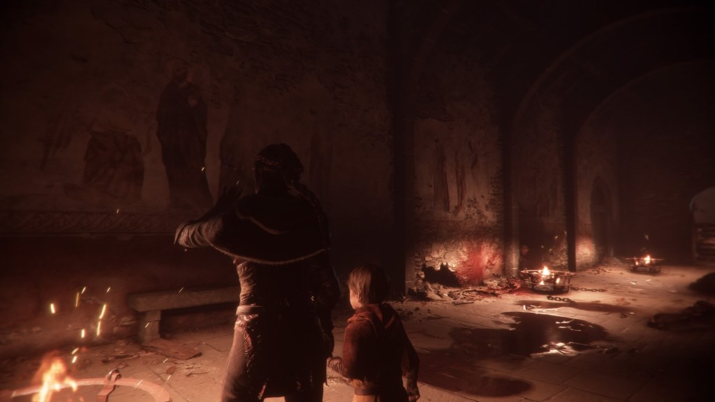 For me to enjoy a story it helps a great deal for me to be invested in the characters moving it along. It’s hard for me to care what’s happening when I don’t care about the parties involved. This is not a universal requirement; sometimes other aspects are strong enough to make up for deficits in character. For example, I couldn’t give less of a shit that my character in Bloodborne has no discernible personality. That game isn’t about who the Hunter is, but what the hunter’s up against. I can’t say the same about Plague Tale though, because the story is very much about the siblings. So them kids better be good. The good news is they kinda are.