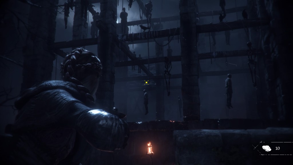 This game also features enemies you can neither kill with a rock nor sneak by. The rats are so numerous you need a different set of measures entirely. Like fire and weird spotlight things other people set up that Amicia can make use of. They operate by a completely different set of rules from the Inquisition folks. They’re more like environmental hazards you can use light and fire to play around. So it suddenly turns into more of a puzzle game than stealth when they show up. Sometimes I wonder what would happen to these kids if they just ran into a room with rats where there wasn’t any light source or material to make use of. What if there wasn’t a corpse hanging around? What if that torch wasn’t there? A lot of stuff feels awfully convenient, but I suppose the game would be impossible/more frustrating if they weren’t there. Such are the tradeoffs between immersion and enjoyable gameplay.