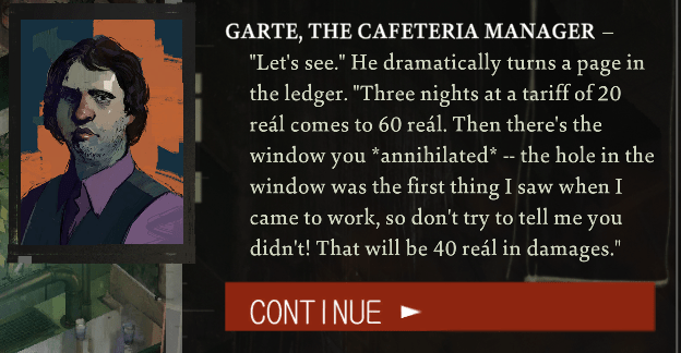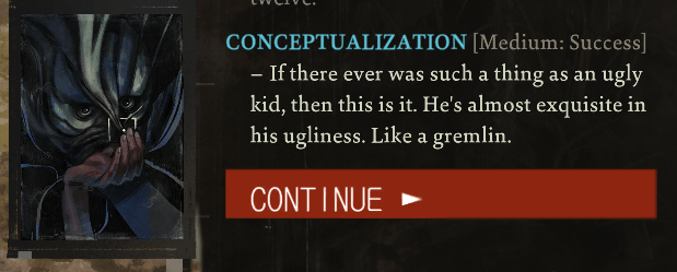 Yeah…. not exactly the type of person I’d want to be, as a man with college debt I don’t need any more. Thankfully because you’re a cop you can whittle it down to only 30 real if you pass a check (more on that later). But one specific character comes to mind that is pivotal to the game: Lieutenant Kim Kitsuragi