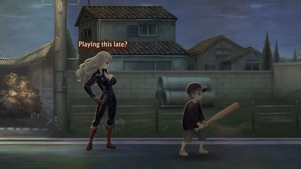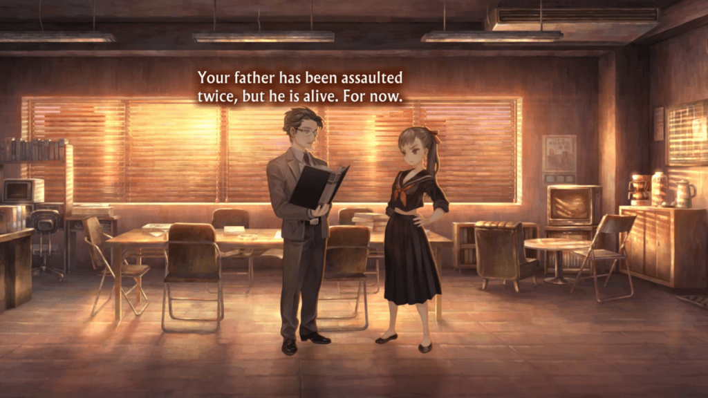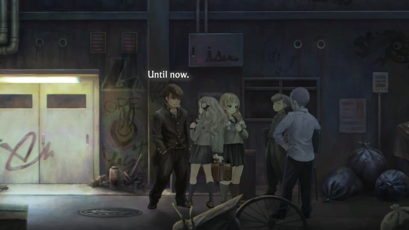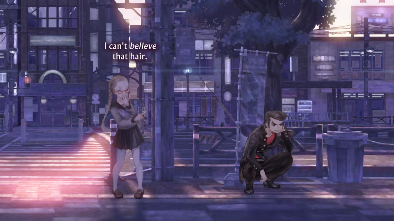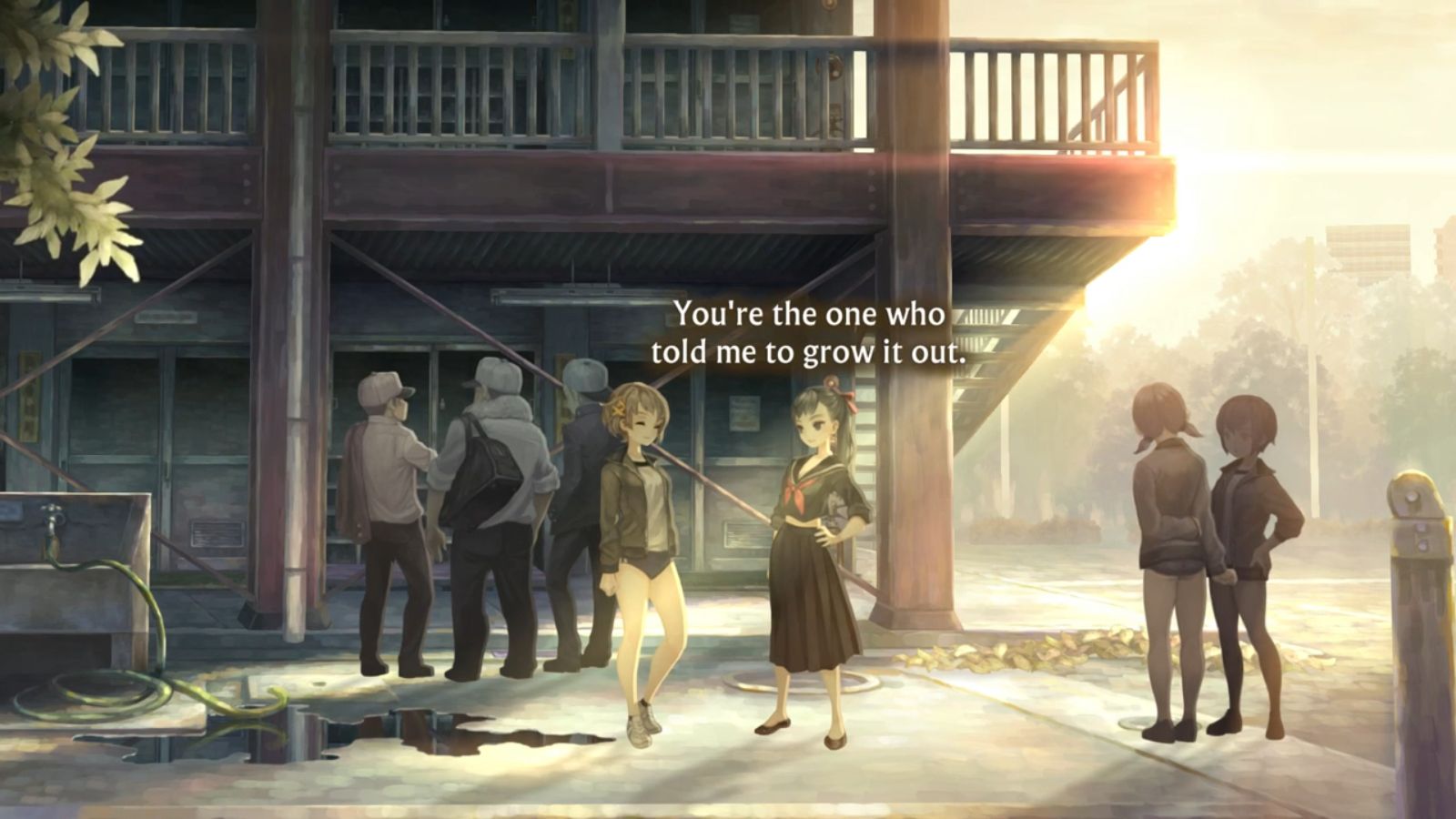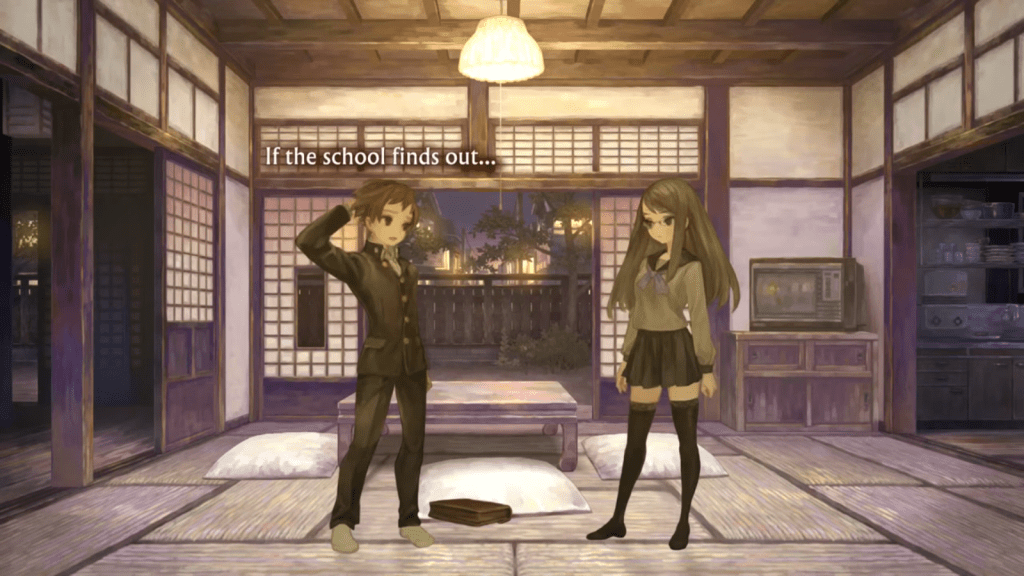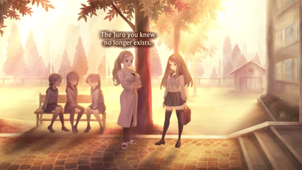 Natsuno’s route begins in the evening at the high school in 1985. As she wanders the halls, she encounters Juro and Iori having a pleasant conversation about their dreams.