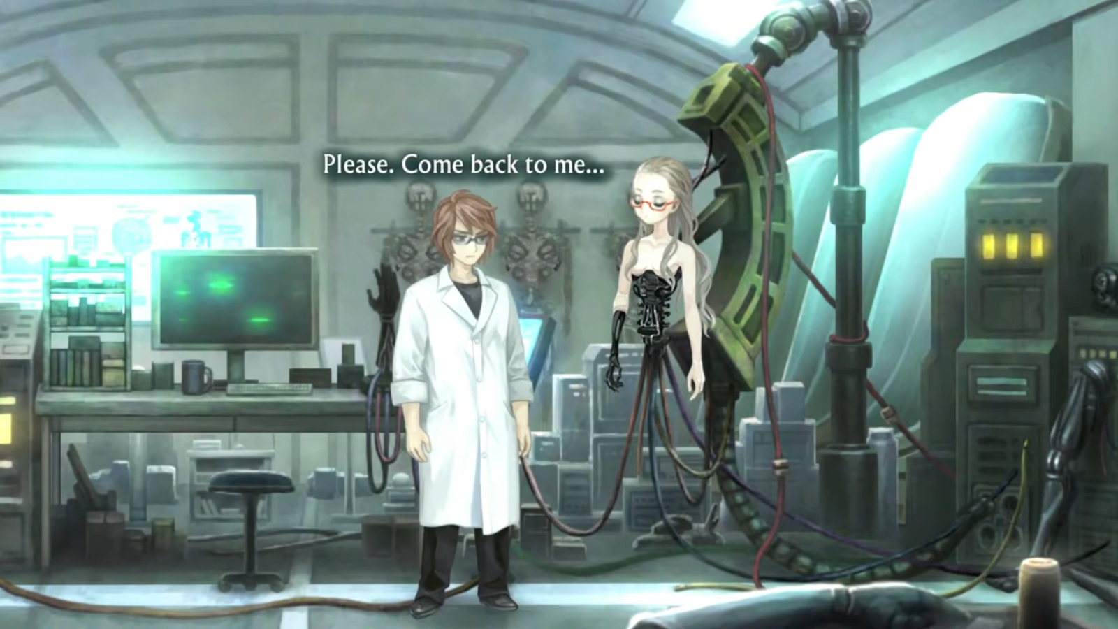 It’s only after a few go throughs that you develop the thoughts necessary to progress through to different parts of the route, affecting the outcome in such a way that both Nenji and Kisaragi survive. It’s also revealed that of all the 13 pilots, Nenji was the first to be injected with the nanomachines as a young child by adult Morimura, in a scene that screams stranger danger.