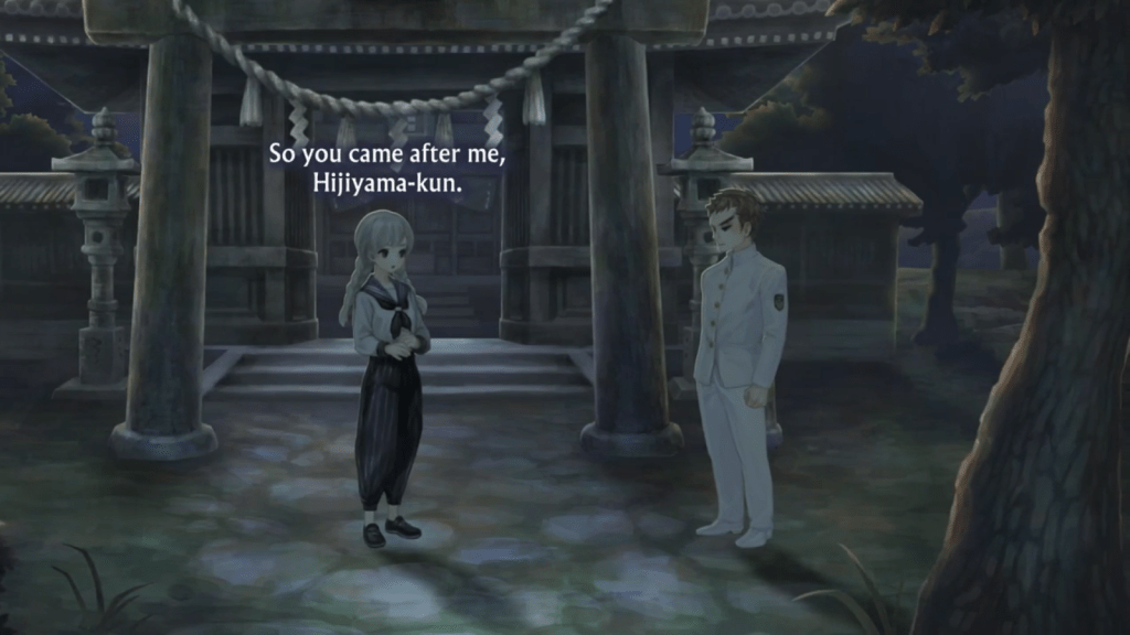 All the while he’s been plagued by strange dreams that seem exasperated by his friend Kyuta Shiba constantly giving him tapes to watch. And like the nerd that he is, he consumes them as I consume dehydrated mango slices (that is, voraciously and whenever I can). And honestly, it makes sense. His will be the story you start with and likely one of the first you fully complete, and due to his unique circumstances, he interacts with nearly every character multiple times. That being said though, the twist in his route is heavily spoiled by other routes (notably Yakushiji’s) and the revelation on who Kyuta Shiba is felt a bit lacking to me.