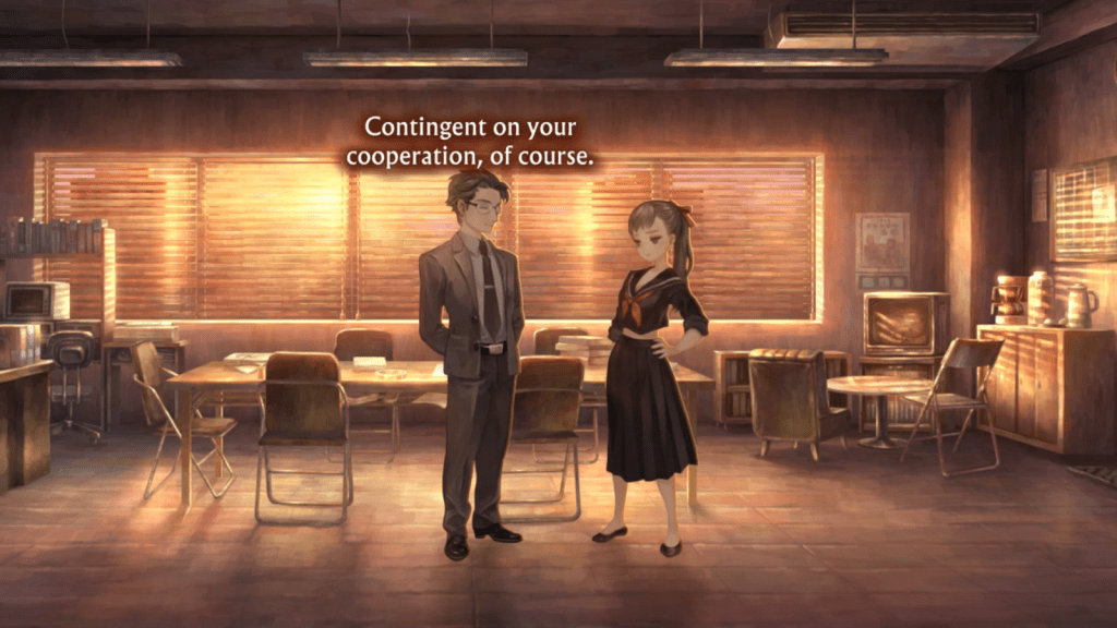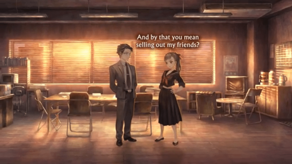 Her route involves keeping an eye on the chosen teenagers (one of which being Natsuno Minami, much to Yuki’s confusion and worry) and dealing with her “assistant” Erika Aiba who insists on joining her for her mission, much to Yuki’s chagrin. It’s kind of fun having to play a double agent in this game, as Takamiya often does things against the orders of the higher ups to ensure the safety of others, like when she knocks out one of the agents for harassing Fuyusaka.