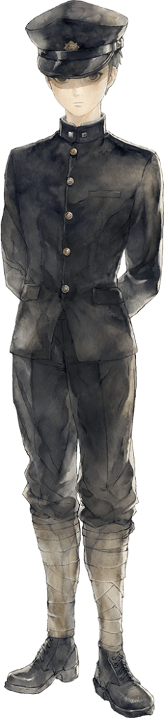 Once a navy soldier from 1940s era Japan, Hijiyama was forced into an unfamiliar era where he knows no one, has no money and is heavily dependent on the one person who put him in this mess to an unhealthy degree. His story begins at the Tokisaka shrine in 1944, where a young girl with long braids enters from stage right, noting the confusion down below and disregards it as unimportant, as all she needs to do is get out and get out quickly. But her departure is hindered by the gate being locked, and Hijiyama arriving in military garb.