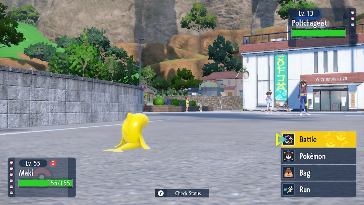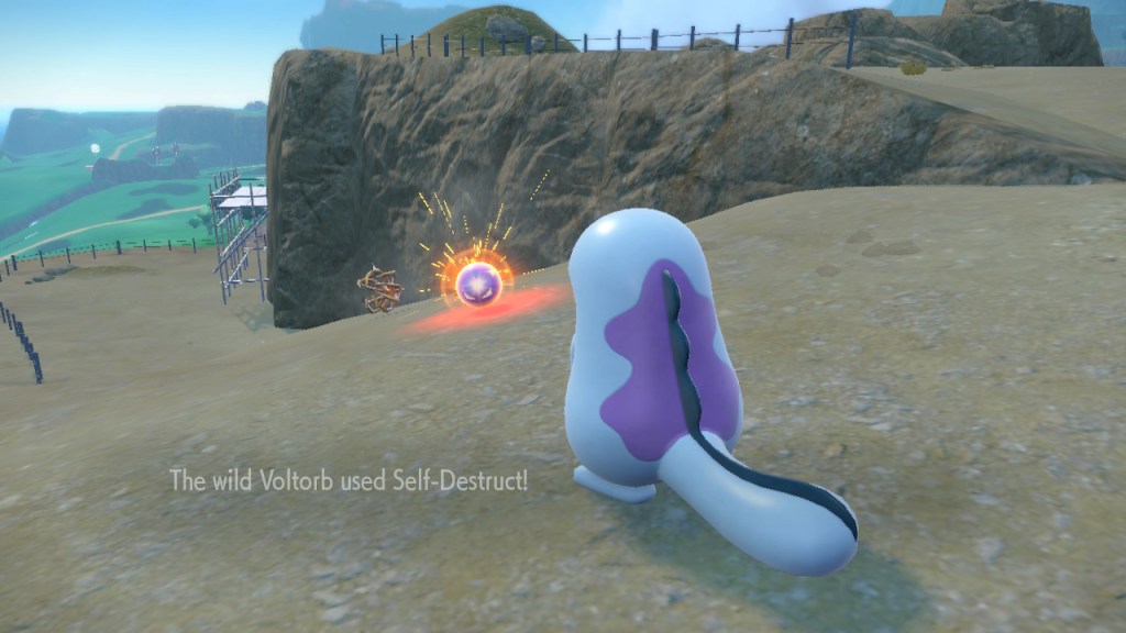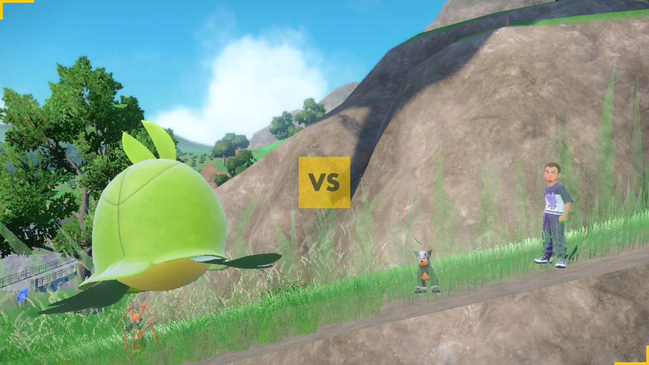 One problem in particular arises with the way Pokemon battles are handled. In most previous games you’re taken to a separate arena of sorts when you encounter a Pokemon. In this game they took an innovative step by having you fight right in the spot you encounter them. Well, innovative-ish, I’m pretty sure they picked that up from Legends of Arceus. This is a cool idea and could arguably make the experience seem more immersive. After all, you don’t get transported to an alternate location when you fight in the real world. The only problem is there’s a whole lot of jank that comes with it. The main culprit is the wonky ass camera. Like sometimes when you play FromSoftware games the camera goes out of control when you’re stuck in a bad corner and can’t see things properly. In Violet you can get those kind of janky angles from the start.