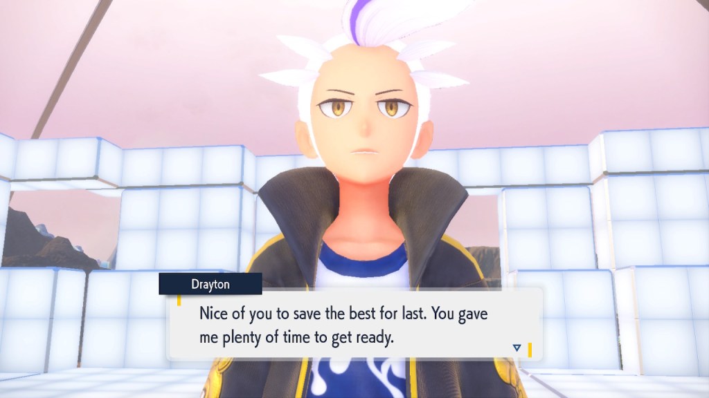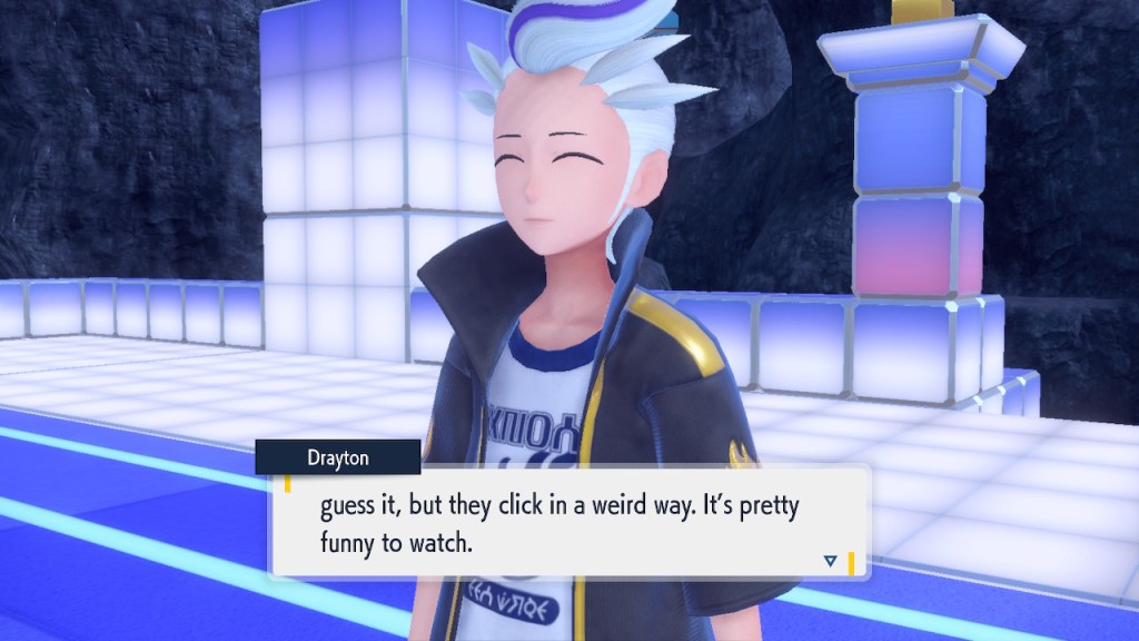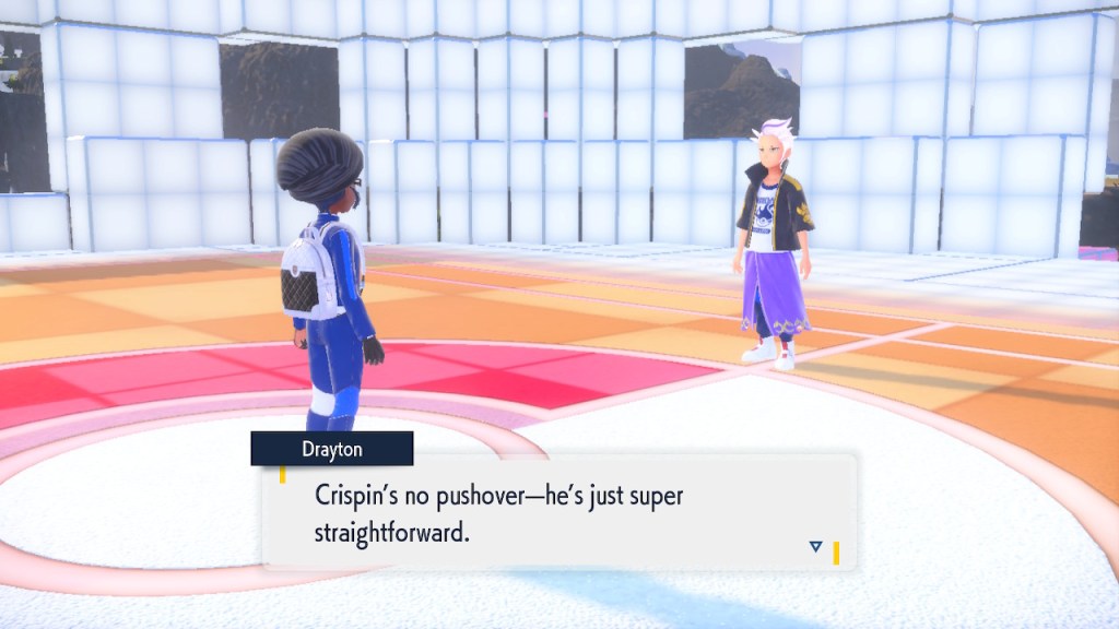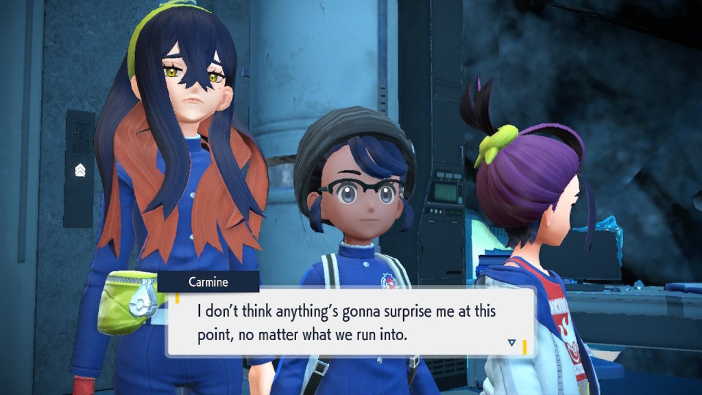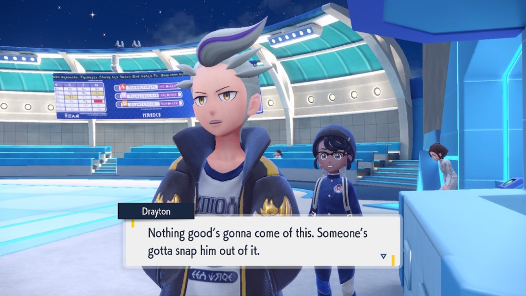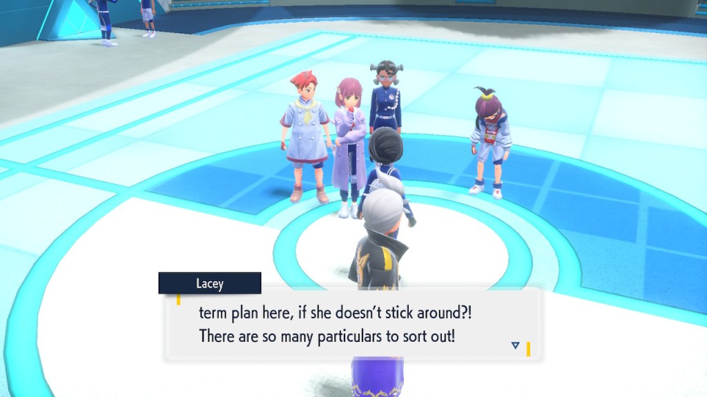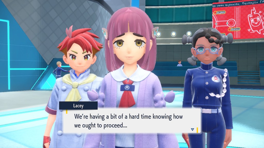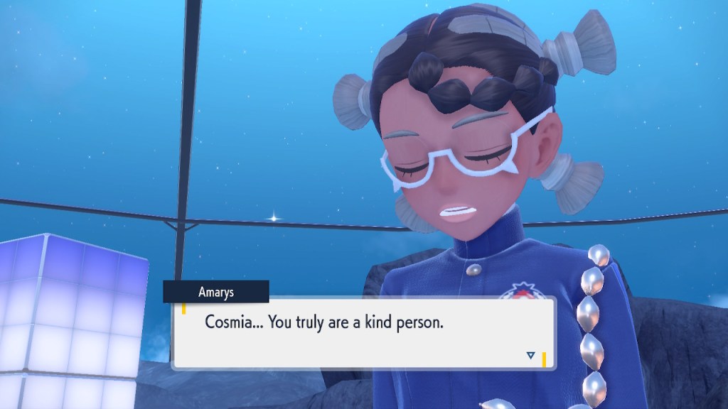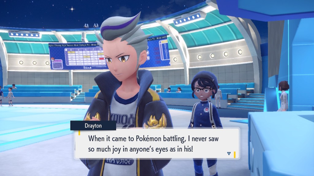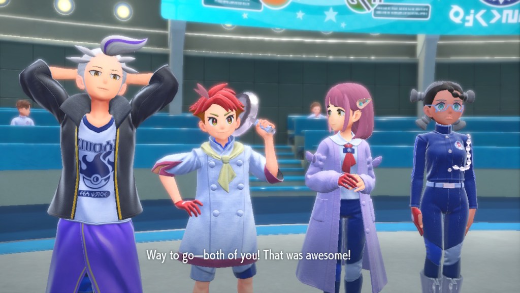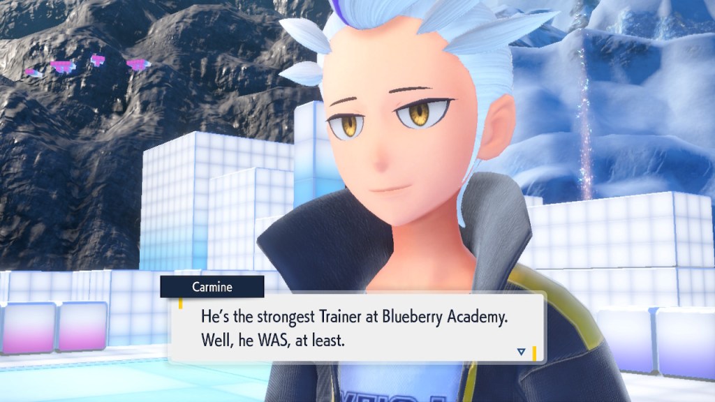 Do you remember the name of that Black and White Elite Four lady I showed the screenshot of earlier? Her name’s Shauntal. If you don’t remember I don’t blame you because I didn’t either. But now I do because I wrote this blog and shit she’s kinda cute. Thanks Pokemon Violet, I now remember that Shauntal exists and I probably will do very little with that information. Because she’s one of those many neat looking but not much else characters that Pokemon has created and moved on from. Most of this game’s cast will have the same fate. Nemona and Penny might last. Rika could last. Certain DLC characters might last. Otherwise… maybe the anime will do some other characters a favor? Maybe.