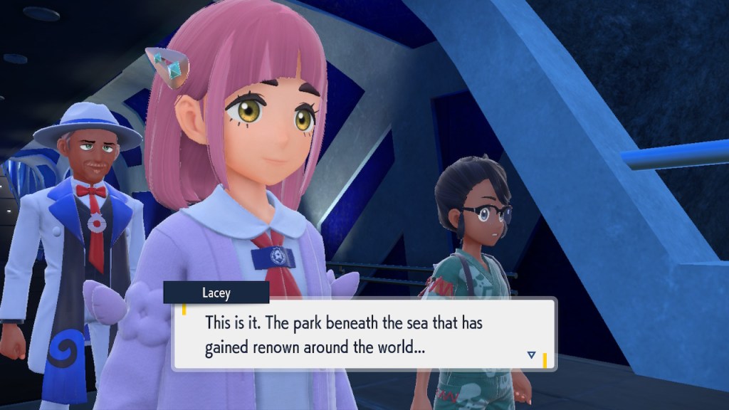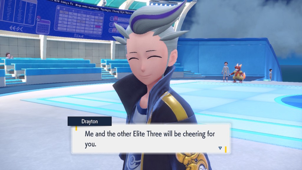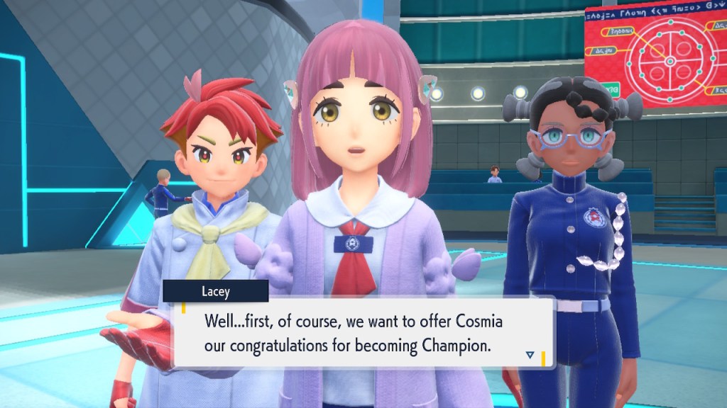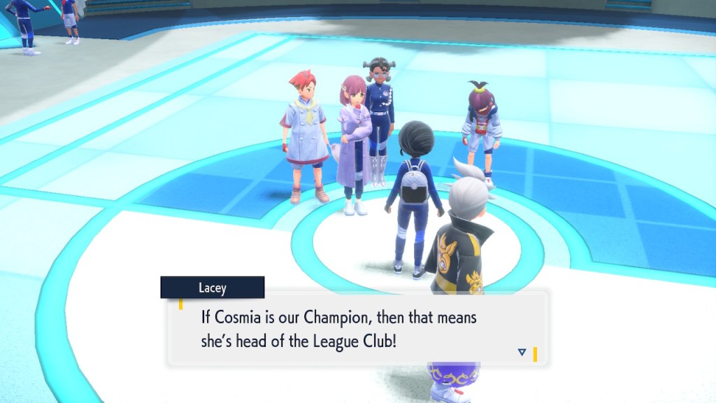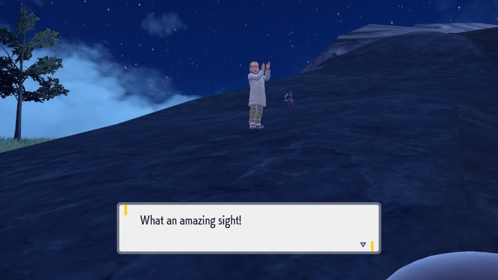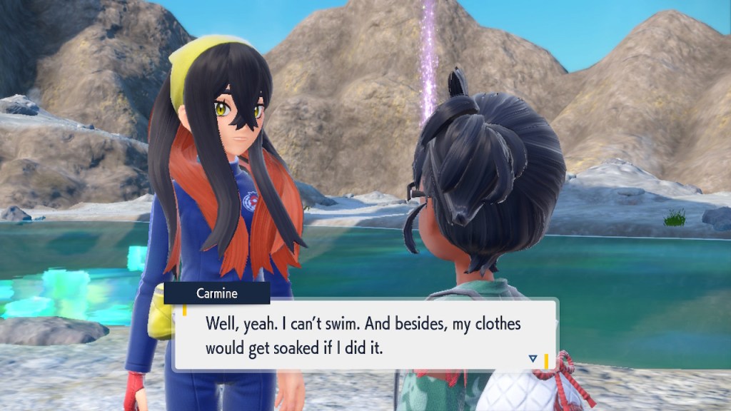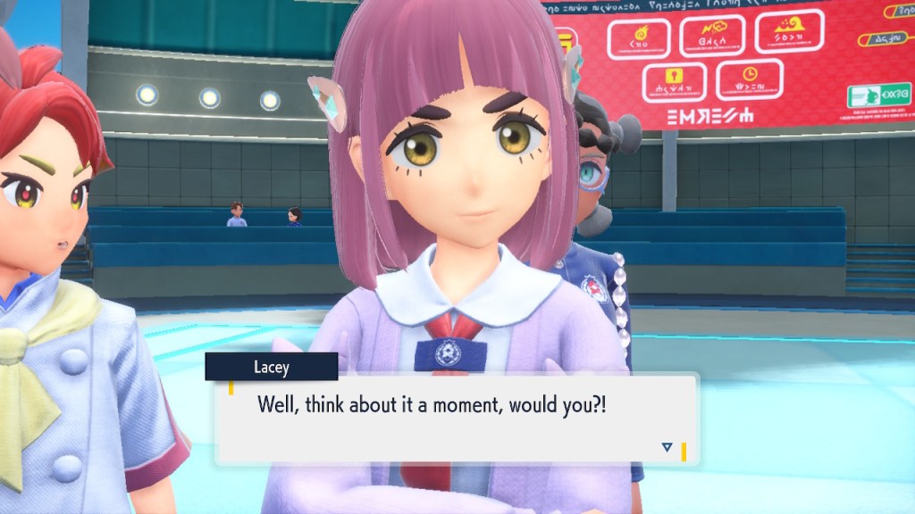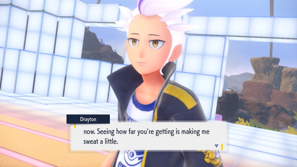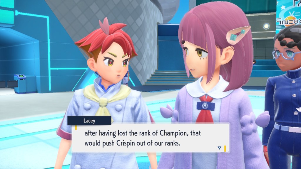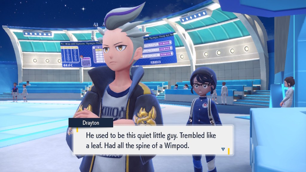 Do you remember the name of that Black and White Elite Four lady I showed the screenshot of earlier? Her name’s Shauntal. If you don’t remember I don’t blame you because I didn’t either. But now I do because I wrote this blog and shit she’s kinda cute. Thanks Pokemon Violet, I now remember that Shauntal exists and I probably will do very little with that information. Because she’s one of those many neat looking but not much else characters that Pokemon has created and moved on from. Most of this game’s cast will have the same fate. Nemona and Penny might last. Rika could last. Certain DLC characters might last. Otherwise… maybe the anime will do some other characters a favor? Maybe.