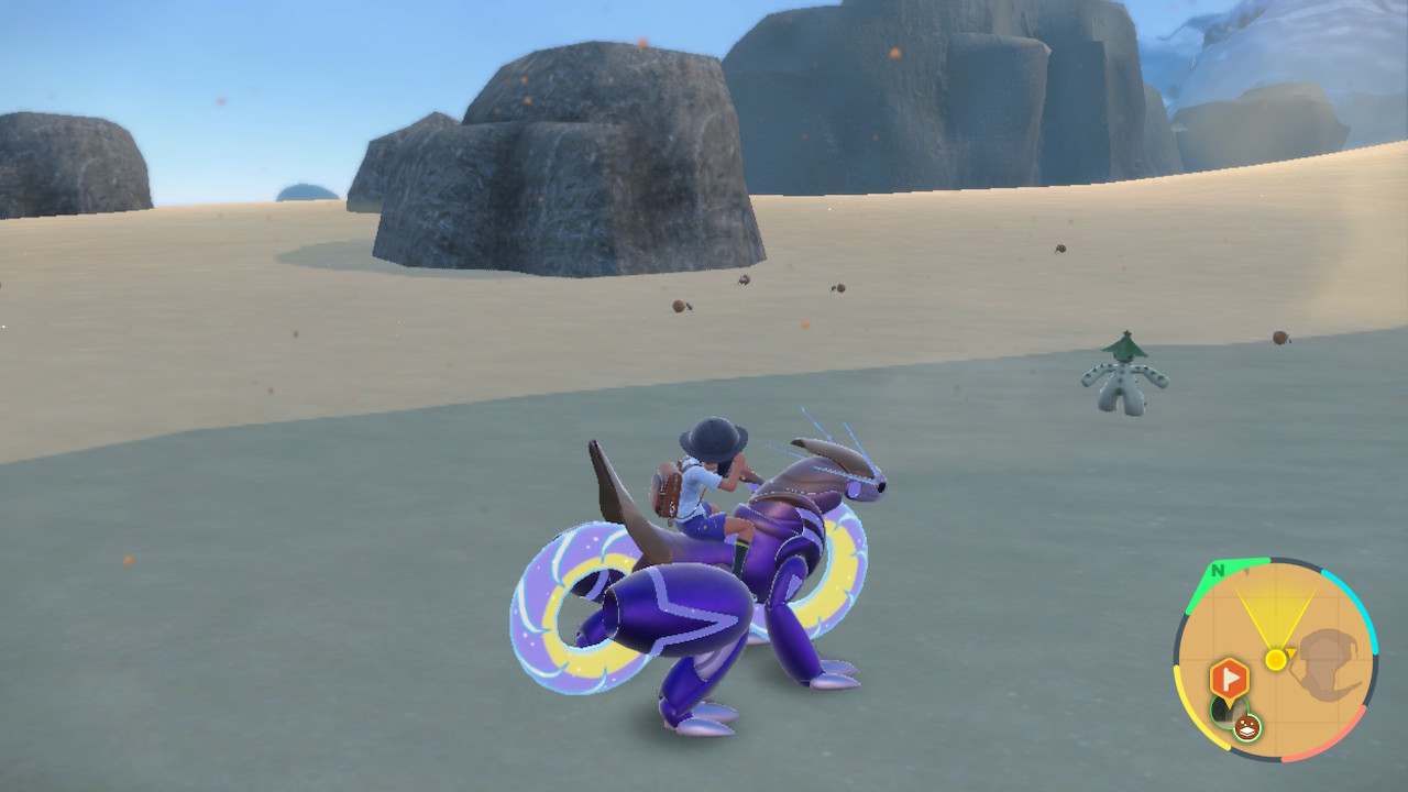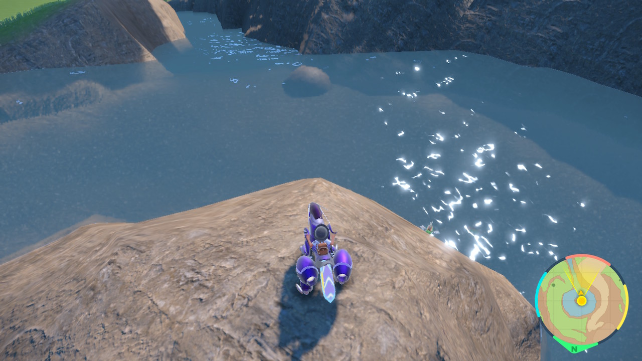 The last thing I’ll note for this section is Miraidon. In this game instead of a bike you get to ride a bike shaped Pokemon, which is honestly a fun idea. Not only can he go decently fast, but if you feed it enough special herbs it can do some other tricks too. It can climb, it can glide, it can jump, it can swim, and if you play the DLC it can learn to fly too. An excellent companion to help navigate this open world. I actually enjoyed moving around with Miraidon quite a bit. If only this game had nicer landscapes to traverse.