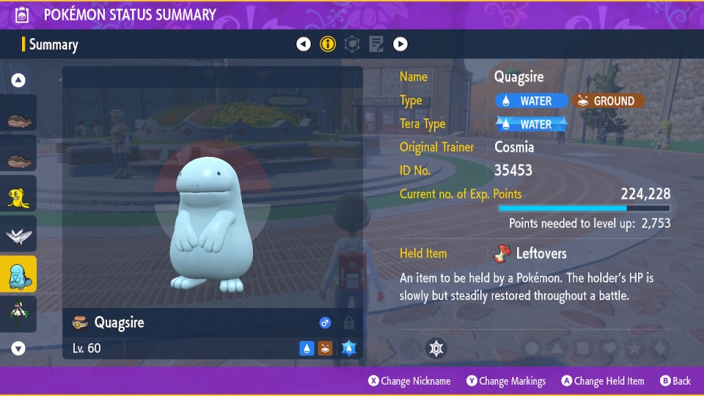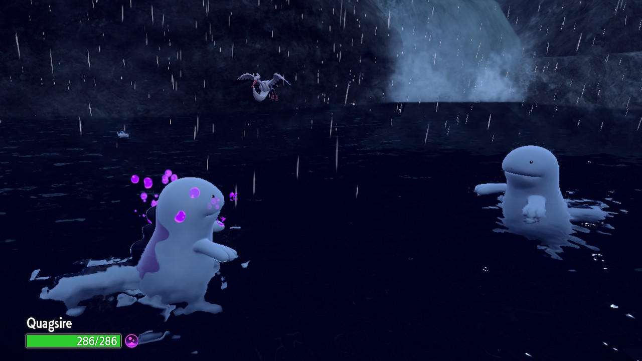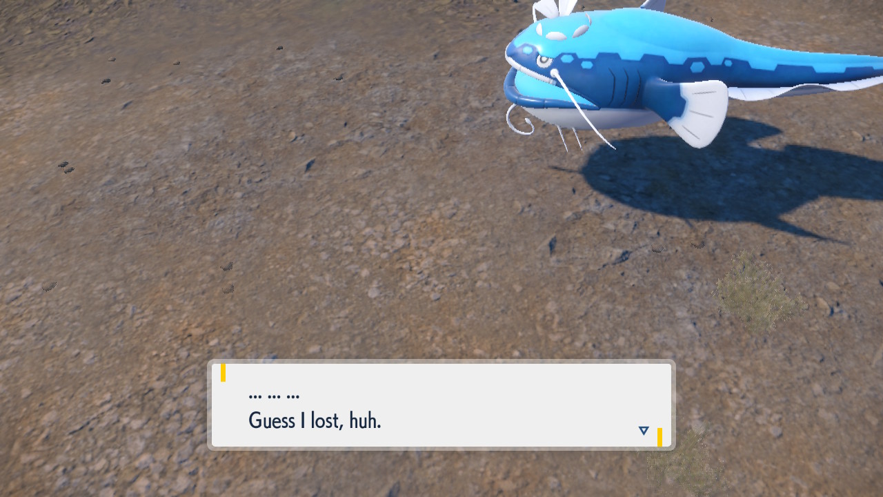 Yet details like that hardly matter at all when you’re just playing the game as usual. I played through the entire base game with two Clodsires and a Quagsire on my team and I didn’t have much trouble at all. Not to say I never struggled at all, but most of my hardest fights were the ones I was underleveled for. I have to give Game Freak some credit here, the NPC trainers seem to have improved AI to some extent. You see some trainers use strategies that you hardly ever saw outside of competitive play. Like they’re actually using held items now, shit’s wild. They make brain dead decisions less often than they used to as well. Thanks to that I’ve had a handful of battles that felt like an actual fight. To an extent where a 9 year old spamming Fire Blast could conceivably get frustrated occasionally maybe. Personally I would’ve been happy to get challenged more. I don’t think I ever needed more than two attempts to beat anyone in this game. I’m not saying this game needs to be Dark Souls or whatever. I know that’s never happening outside of self-imposed challenges and fan-games. I don’t think they neccessarily should do that either. However, Game Freak gave me the occasional taste of a legit fight, and it would’ve been nice to see that more often. The veterans need stimulation too.