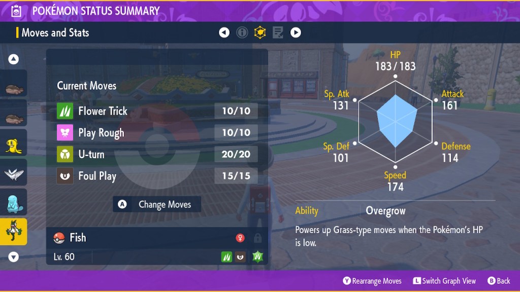 I also tried some other new pokemon out. Like Bramblin, the ghostly tumble weed Pokemon. Given my affinity to ghost types and peculiar designs I enjoyed this addition. However, they really couldn’t come up with anything interesting to evolve it into. It went from a small tumbleweed to a uh, bigger tumbleweed with a jack-o-lantern face. Brilliant. That wouldn’t bother me so much if it wasn’t for a different issue, that it’s not a particularly strong Pokemon. So it goes. There are a decent number of grass/ghost pokemon at this point, I pretty much like all of them. Game Freak doesn’t want to make any of them good for whatever reason. Hate to see it.