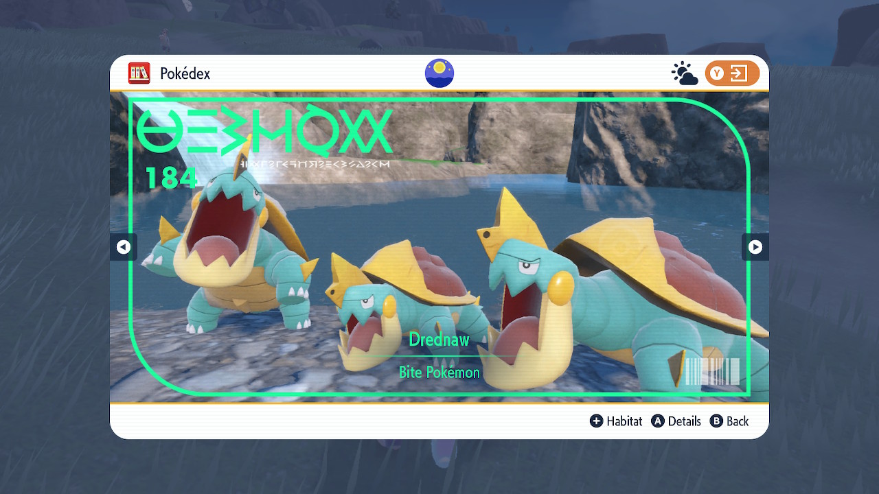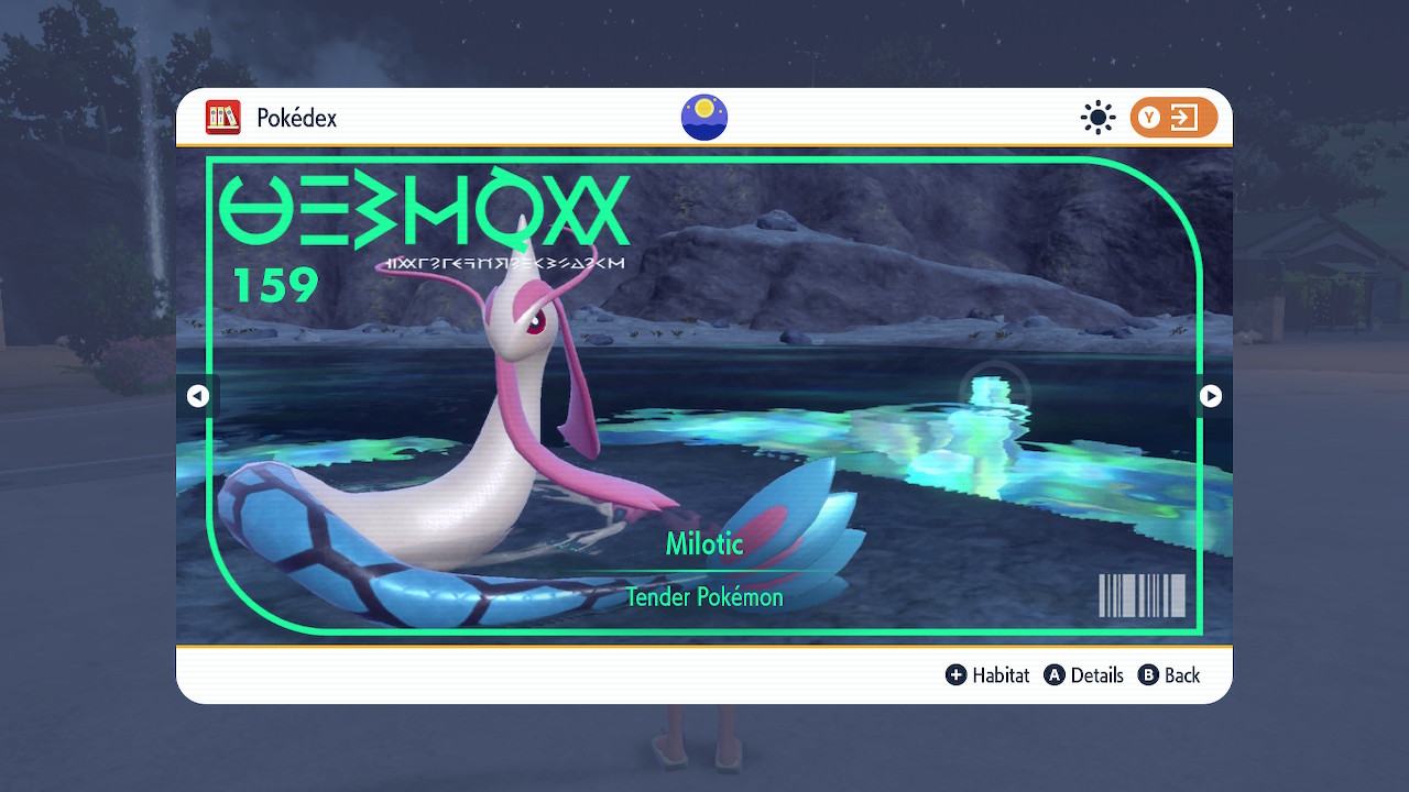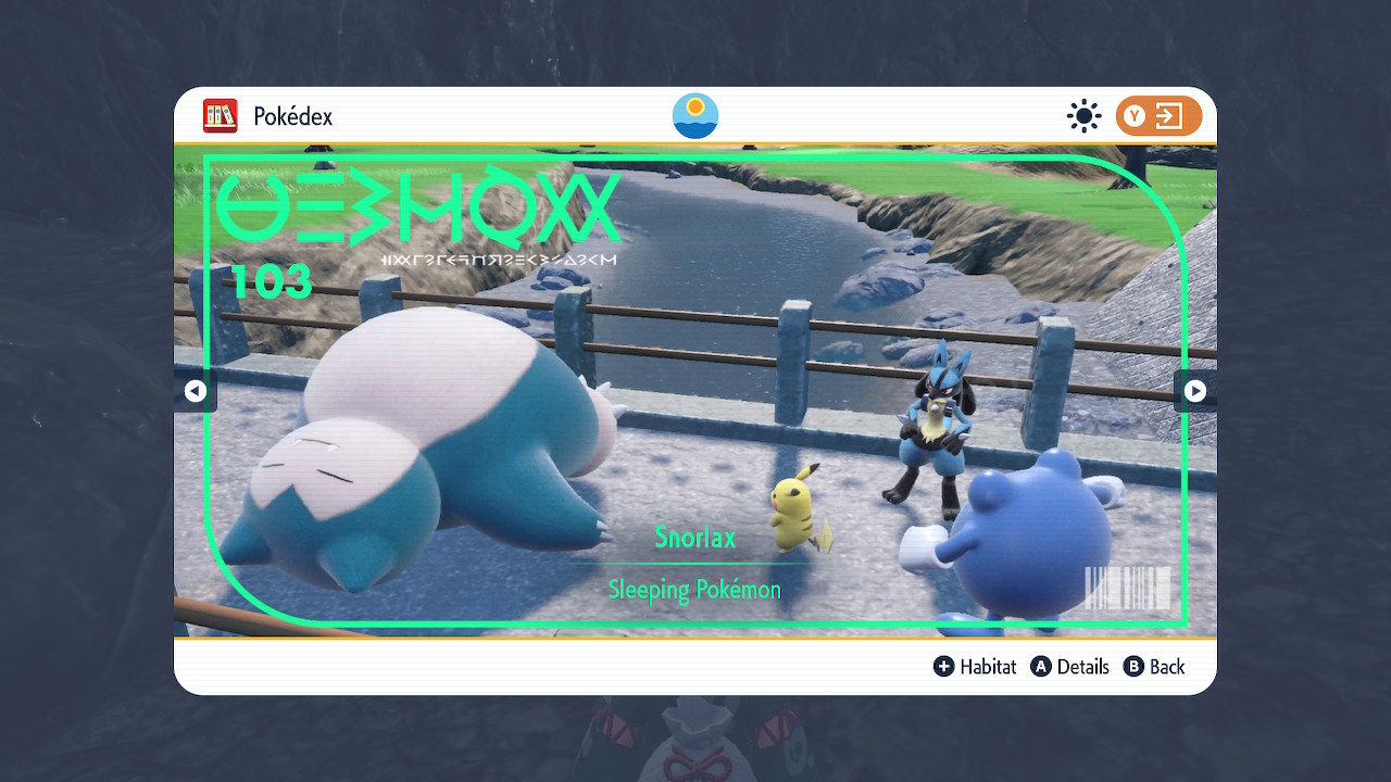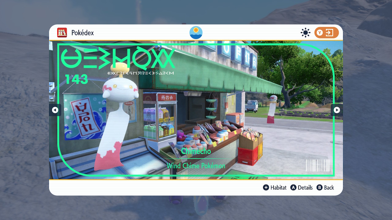 As for my overall rating of this game… Hm. I think the DLC’s better than the base game. It’s a tighter experience and the characters are especially good here. As for the base game well… It certainly has its moments, but again, read all the comments above. It has some great peaks, but large portions of the game are just a slog. So let’s see. 6/10 for the base game. 8/10 for Teal Mask. 8.5/10 for Indigo Disk. 7/10 overall. That sounds about right. OK. There. With that I can finally put this mammoth of a game behind me. I don’t necessarily regret the time I put into it. At least not all of it. But hot damn am I glad to move on. I’ll end this review with one last detail that I liked.