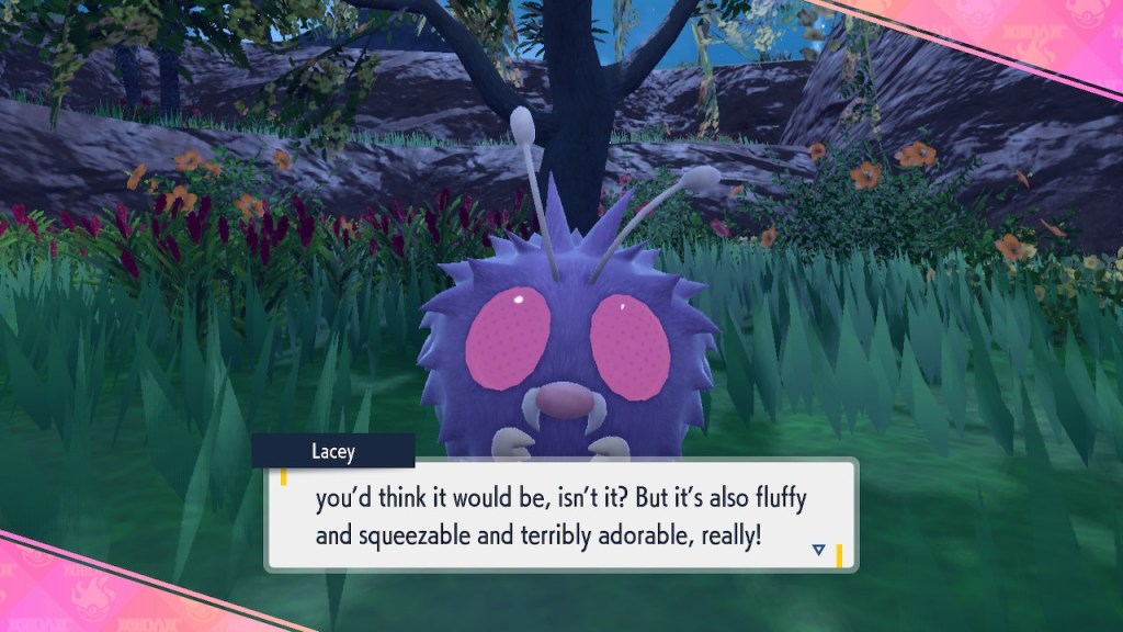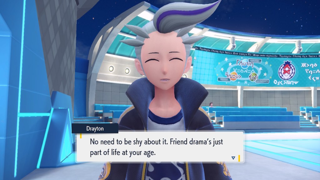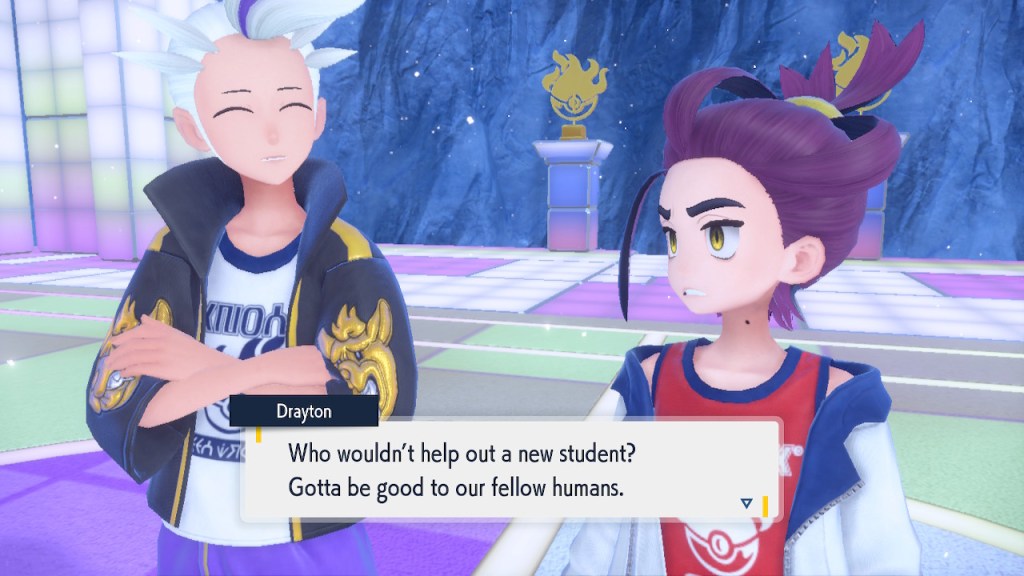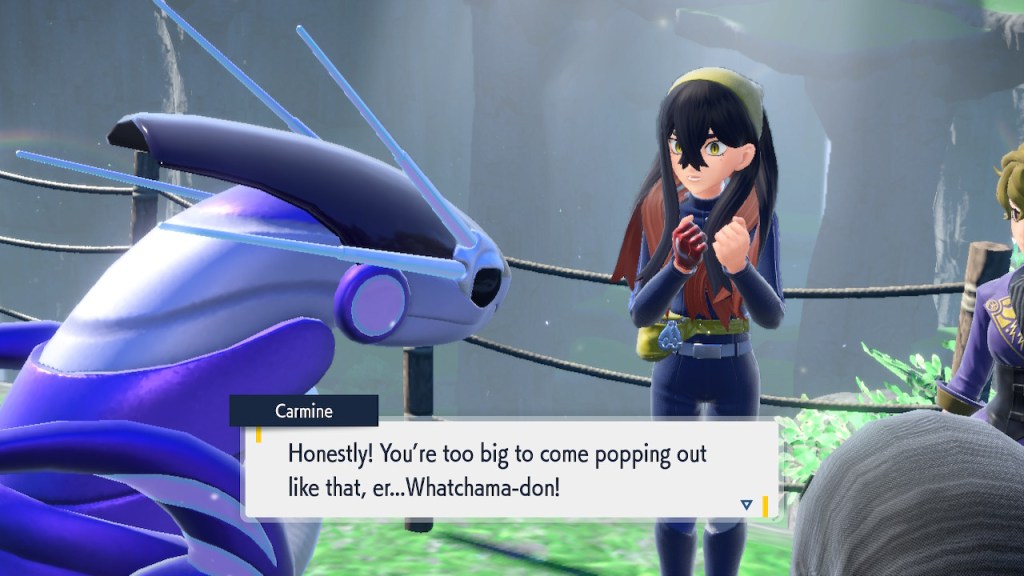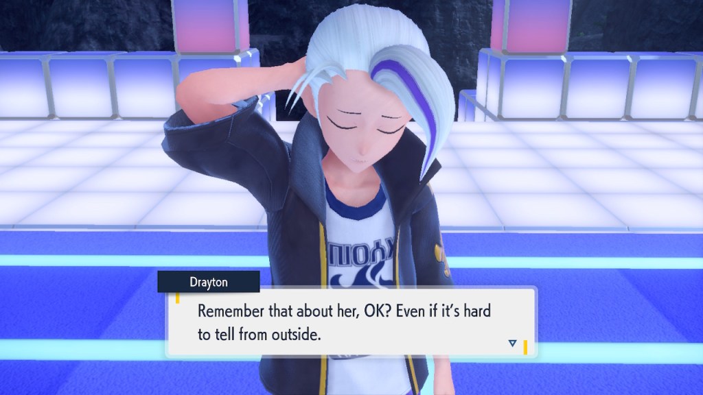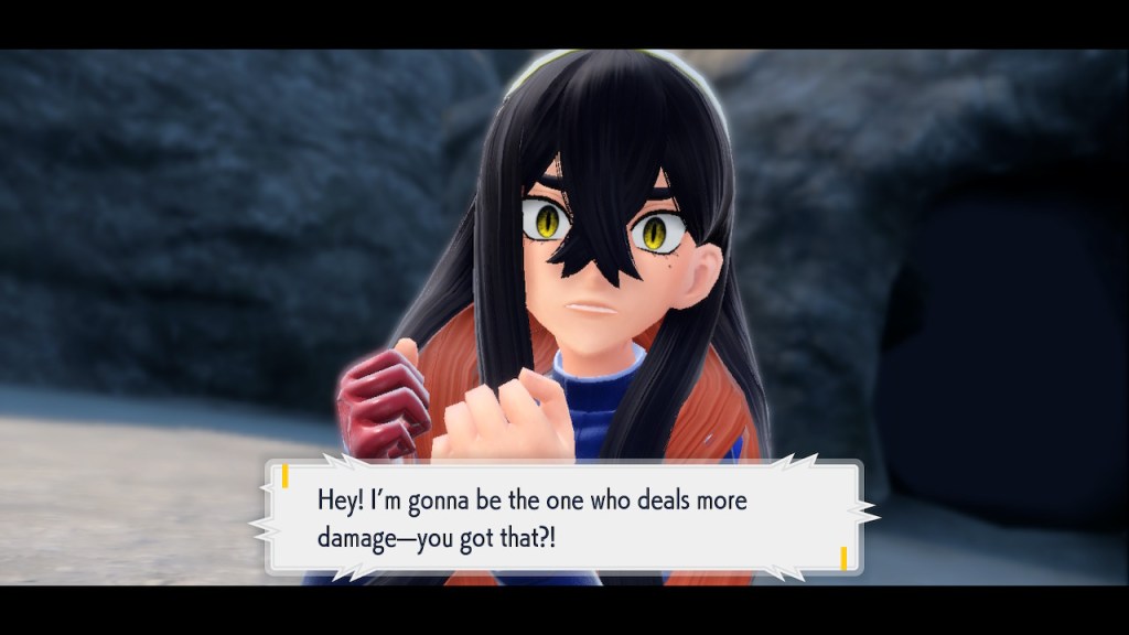 That pretty much covers all the non-DLC characters I want to talk about. There are plenty of others, some of which I also like, and some of which I’m indifferent to. There’s really not that much to say about them. Violet does well in the character department compared to other Pokemon games, but that only goes so far. There will be some standouts that fans will remember for years to come and a lot of whatevers that will get swept along just like all the other old whatever Pokemon characters.