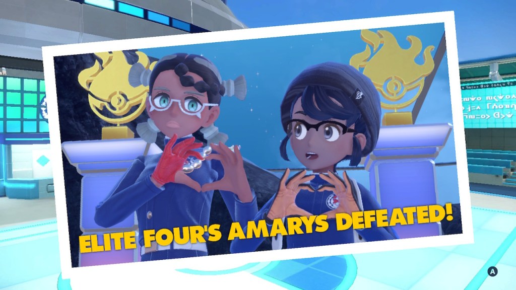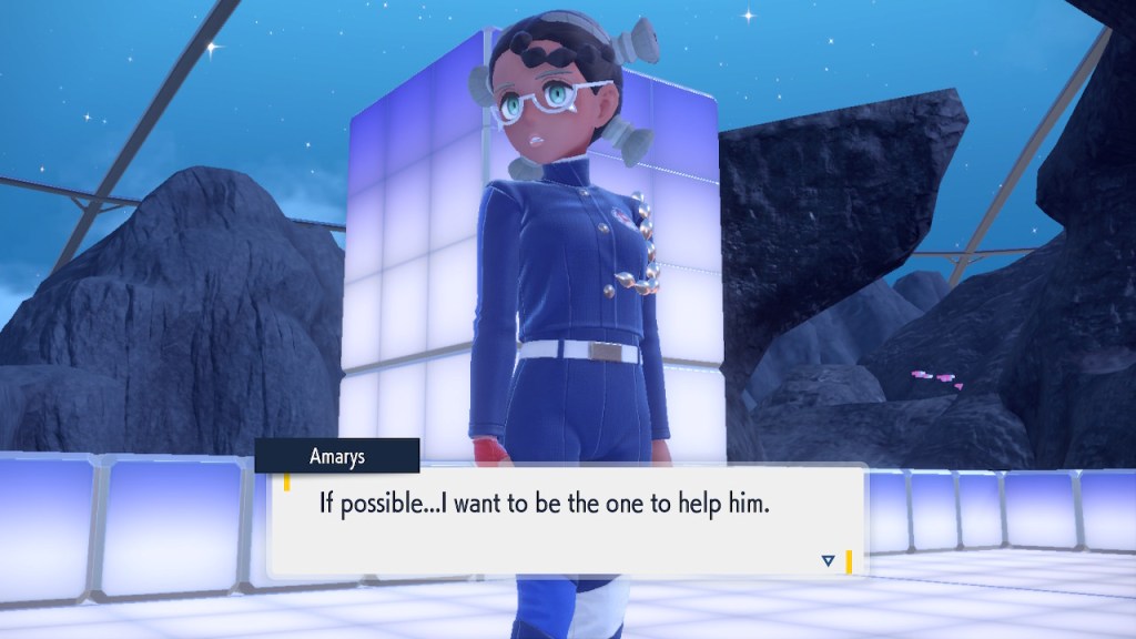 Honestly, the part that challenges the Elite Four is integral. They wouldn’t be elite if they had nobody to beat. Either way I decided to do Amarys next for whatever reason. I like Amarys, she’s probably the best designed Black character Pokemon has ever produced. I could argue Nessa still has that spot, but Nessa’s ethnic ambiguity complicates matter. She could be South Asian for all I know. Except neither of these ethnicities actually exist under those words in the Pokemon world so whatever. Not just her design that’s cool. I like the part where she feeds my motorcycle dinosaur some special food and it can fly. Thanks! She’s also just a cool character in general.