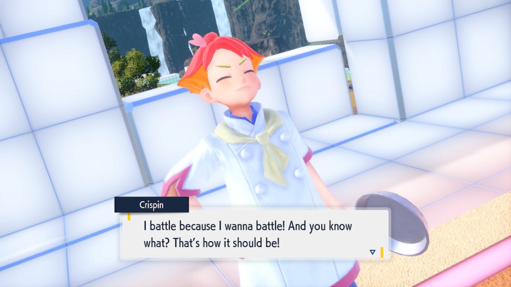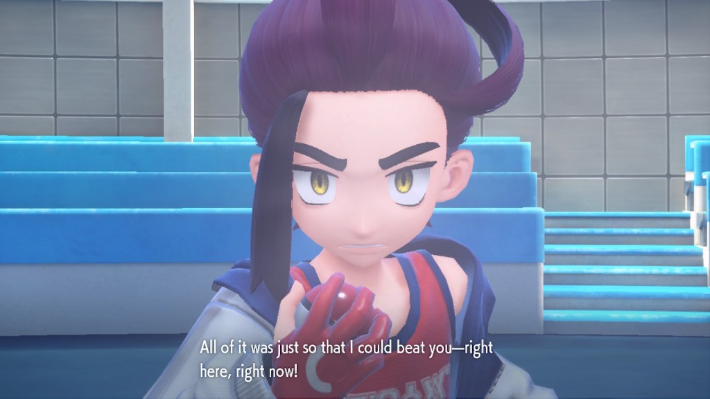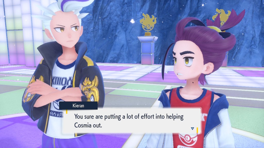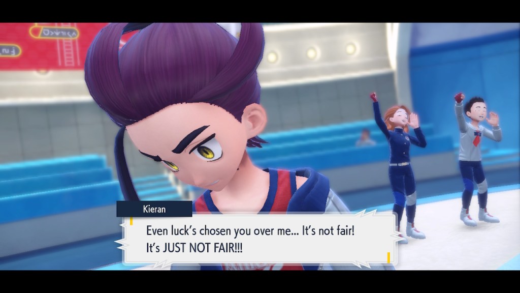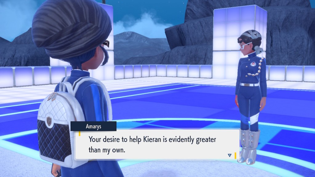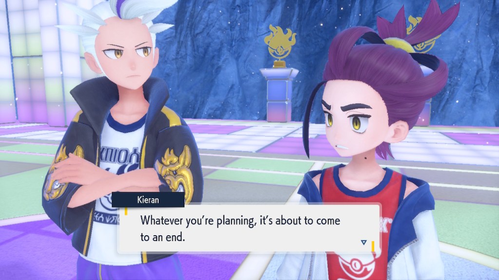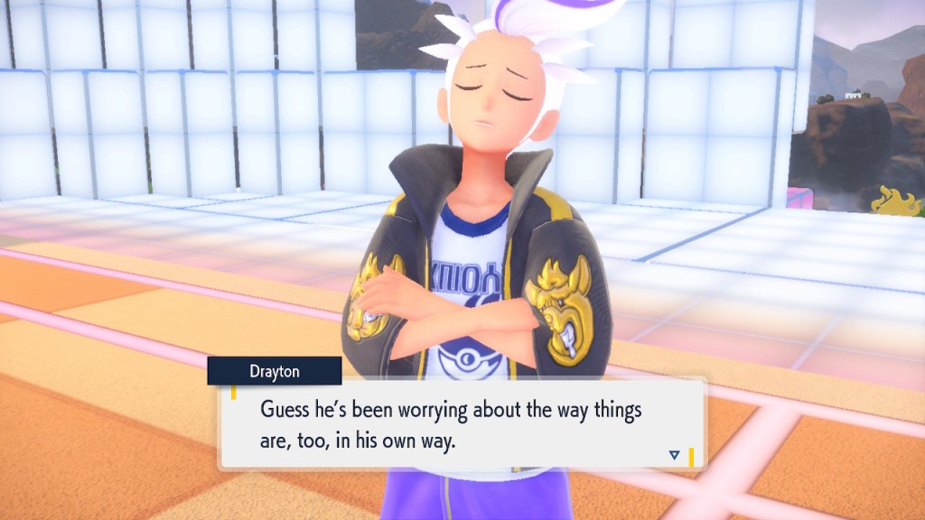 Kieran’s development over Teal Mask is interesting to me. Seeing any character development at all used to be a rarity in the Pokemon world. Seeing character development that goes off in a negative direction even more so. Usually NPCs aren’t that bothered by losing to the player character. They can get frustrated but they somehow seem to instinctively know they’re just another step on the player’s journey. But Kieran isn’t satisfied with that role. For some people that might make them like him less. For me, it makes me like him more. He’s bringing something unique to the table, something I haven’t seen before in a Pokemon game and don’t see much of outside of it either.