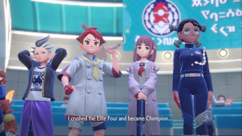 Ten years of Pokemon style progress baby! For the record I actually like the Elite Four this time around. Like, character wise. We’ve got two of my favorite characters in the game in Rika and Larry and they all get to play off each other. Before the Elite Four was all just kinda in their cool decorated rooms separately and there’s only a vague indication that they know or care who the other members are. This time it’s an Elite Four community. But even as they try something new in one respect they’re just totally half-assing it in other respects. Even if you keep reusing the same room couldn’t they have at least made it a nicer room? It’s just one of the many details that conveys a half-assed attitude. Who cares if the Elite Four get a cool room? They’ll buy it any way. Can’t put love and care into every detail, we got tight deadlines to meet! I guess that design philosophy isn’t entirely wrong. After all, Scarlet and Violet are officially the second best selling Pokemon games of all time. They did it by selling slightly more than the third place Sword and Shield. They both sold over 26 million copies. Maybe they’ll use the money from those sales to make the next gen games actually look good. Maybe.
