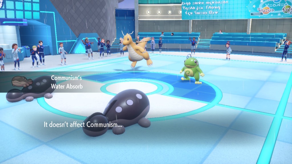 Kieran’s brought a tough team this time. He swapped out some of his old team for stuff that’s more competively viable. He’s using rain dance strategies and items. He’s fighting like someone using every tool at his disposal to win. I’m not sure if he knows about EVs and IVs though. TBH I don’t bother with EV training while I’m playing the story. Shit’s tedious and you don’t need it against the NPCs, not even Kieran. Honestly I liked this battle, I could see how it could be a major challenge. Certainly a bigger challenge than Geeta. But for me… eh? Dragonite did some serious damage, I had a hell of a time taking that thing down. But then that Politoed stayed on the field and it was kinda useless after that but he never switched it out. So I had a much easier time with the rest of his team. Keeping his politoed alive the whole time and picking off the rest of his team one by one. Also I don’t think the AI was trained to respond to Water Absorb Clodsire properly. If I recall correctly he tried to throw some water on my Communism multiple times. Dumbass robot. That’s why you lost man. You lost the love, got hard headed, and tried to challenge a guy whose been playing Pokemon for two decades as a main story NPC. The game wouldn’t let you win bud, sorry. You don’t get to be an asshole and get rewarded in Pokemon. They’ve got to teach moral lessons or whatever. As for real life? Well, guess we’ll just have to see how this regime plays out.