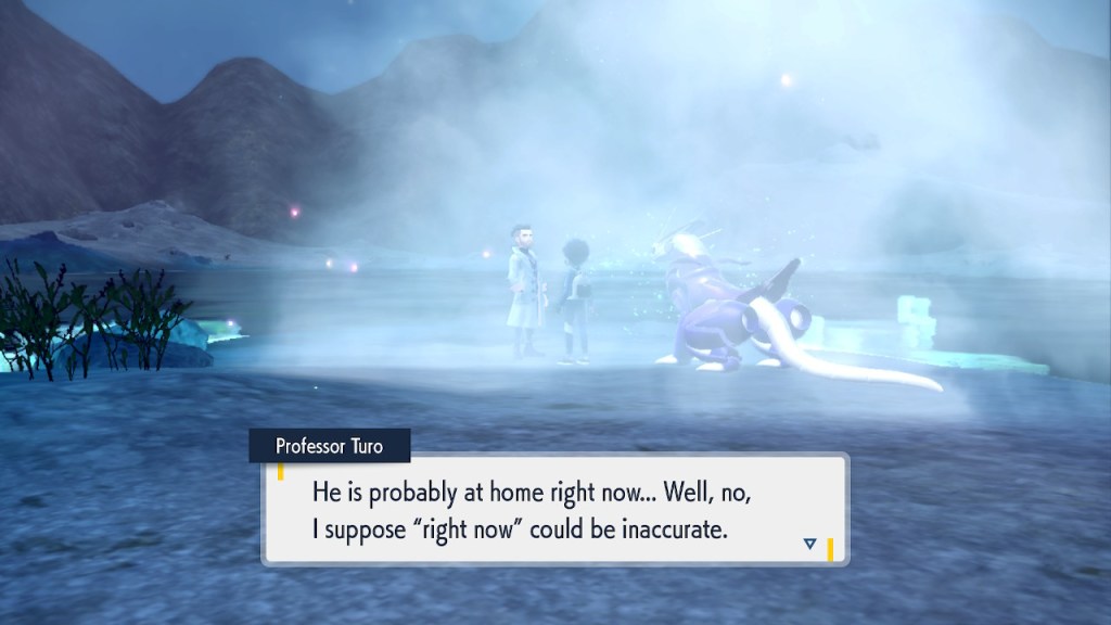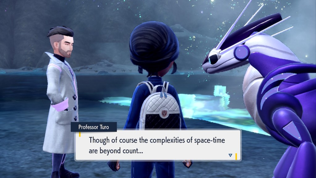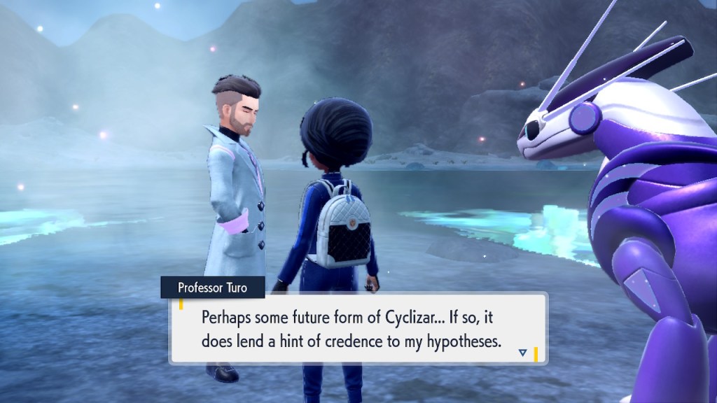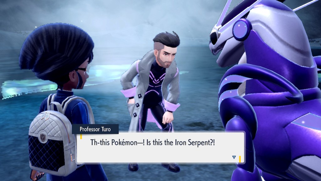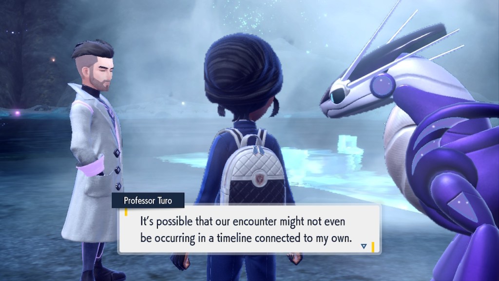 Oh right. Also there’s this thing where you can bring Terapagos, the big legendary of Indigo Disk to the crystal pool and then some timey wimey stuff happens. You get to meet the real Professor Turo, the one that’s not an AI for the first and only time.